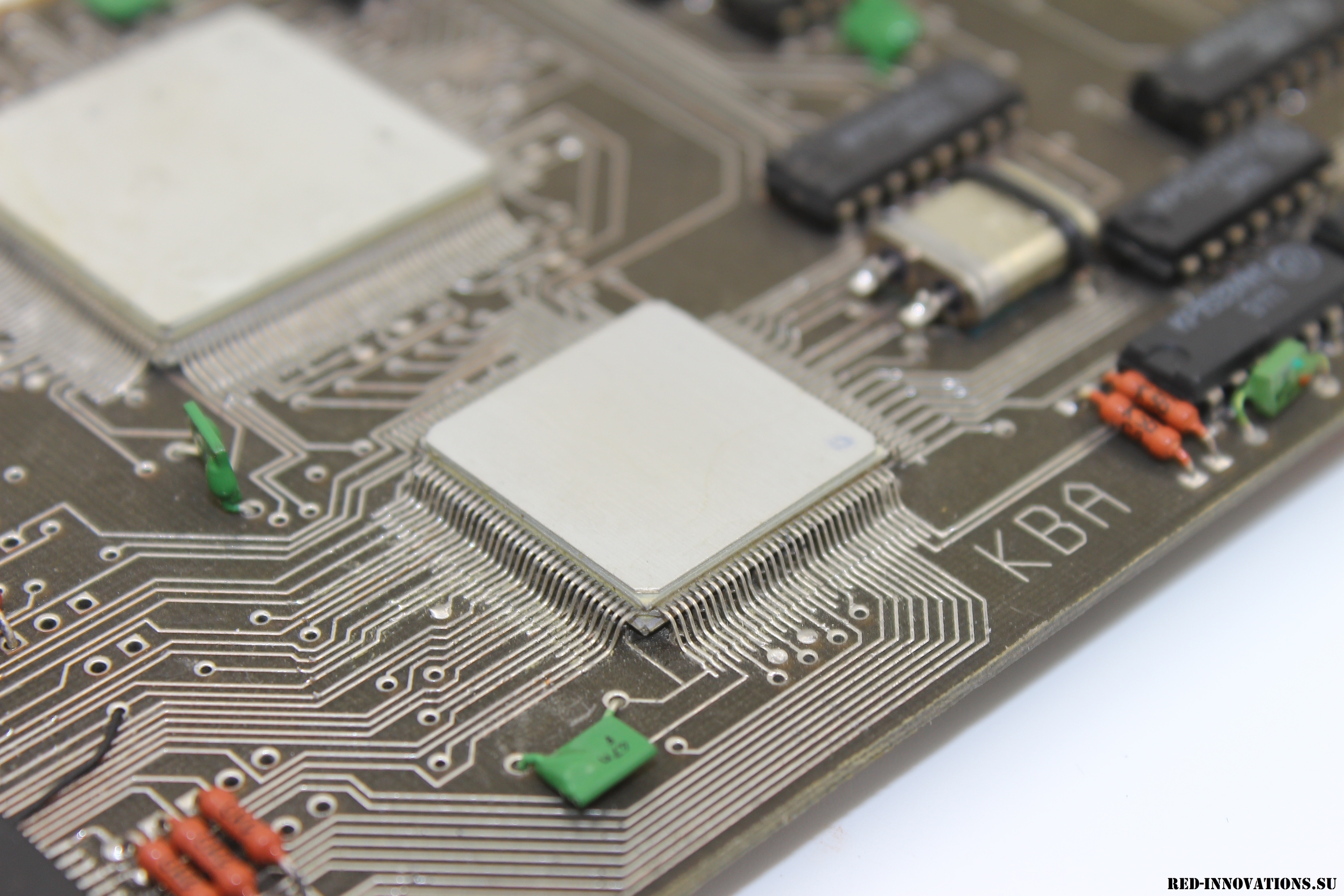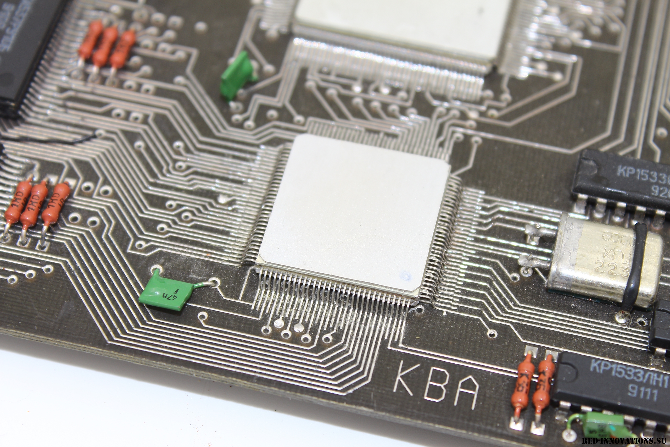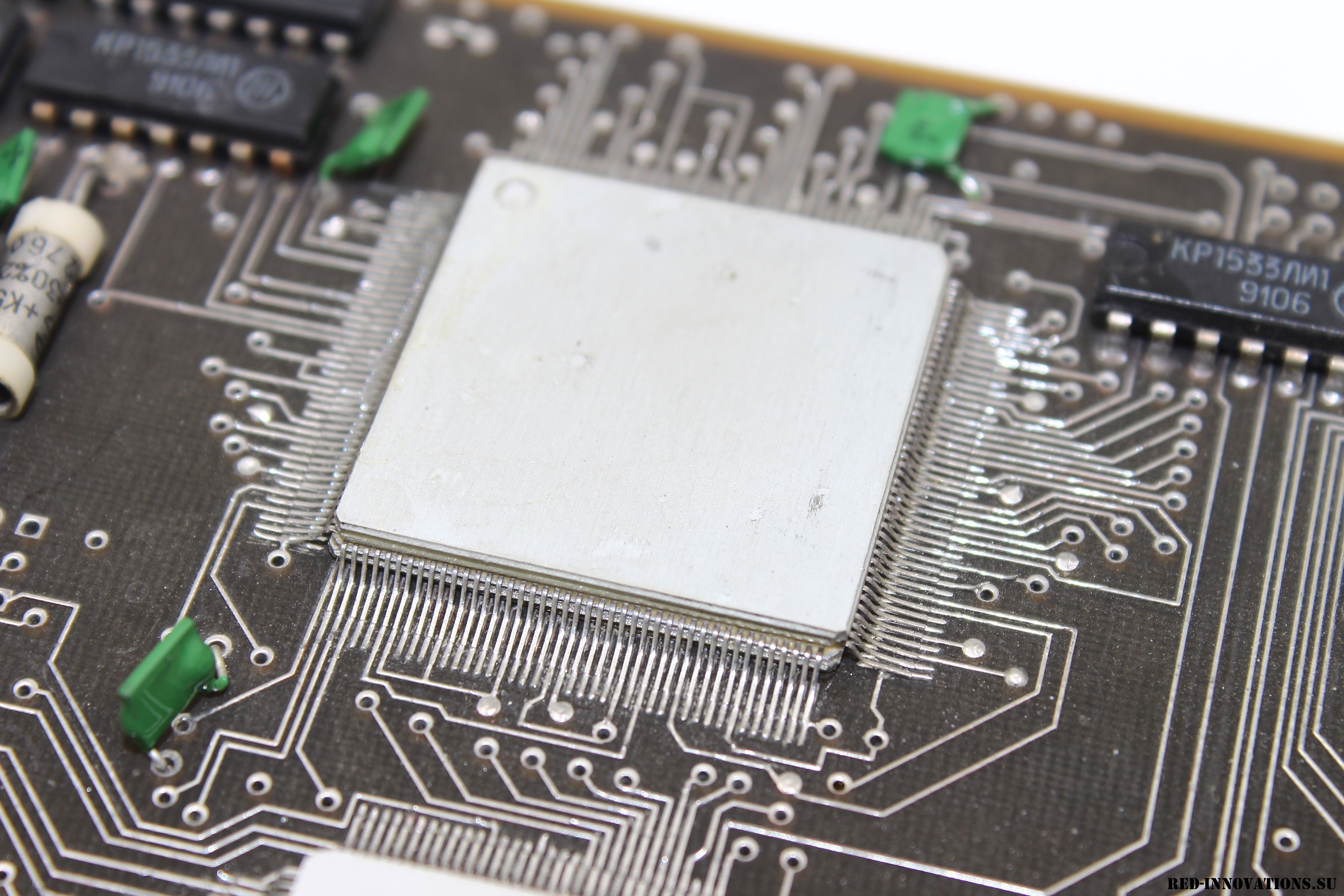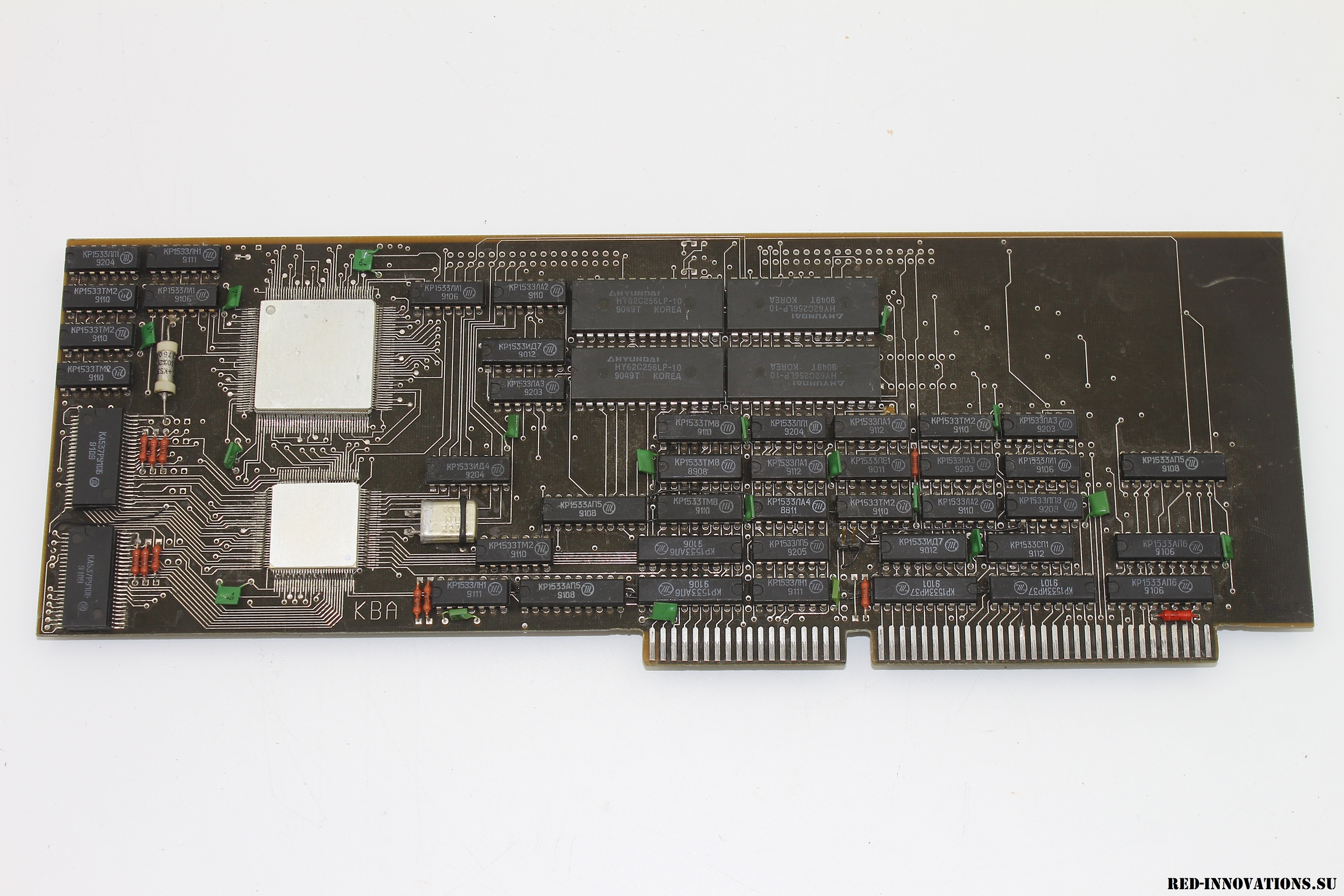 В начале 1990-ых годов на минском НПО "Интеграл" велись работы по созданию 16- и 32-разрядных процессоров архитектуры Forth (НИОКР "Дофин-16", "Дофин-32"). Рабочие образцы 16-разрядного процессора получили обозначение К1865ВМ1Н, размещались в отечественном SMD корпусе типа 4227.124-1. На данной плате предположительно смонтирован именно этот процессор или его 32-битный вариант (меньшая из двух БИС), а также его чипсет. Кроме того на плате имеются микросхемы статического ОЗУ К537РУ10Б и HY62C256-10. ПЗУ отсутствует - вероятно, прошивка должна загружаться после запуска ЭВМ и корректироваться разработчиками по ходу тестирования. Сама плата предназначена для установки на шину ISA PC-совместимого компьютера. Выпущена в 1993 году. Разыскивается любая информация о данной плате!