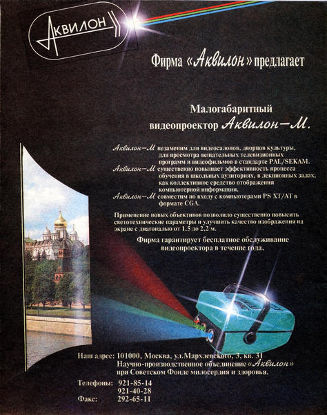 Видеопроектор Аквилон - руководство по эксплуатации