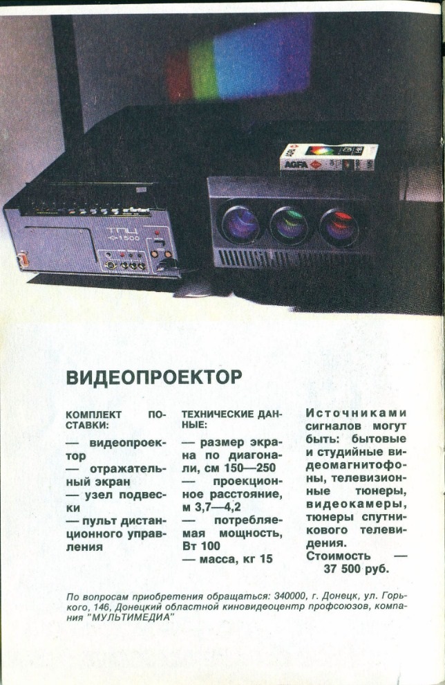 Проектор мелкосерийно выпускался Дубненским машиностроительным заводом в 1991-1992 гг. Работал по трёхкинескопной схеме. Размер изображения при проекционном расстоянии 3,7-4,2 м составлял 150-250 см по диагонали. Потребляемая мощность - 100 Вт, масса - 15 кг. Имелось проводное дистанционное управление. Использовалась элементная база производства СССР и стран СЭВ (ГДР, ЧССР).